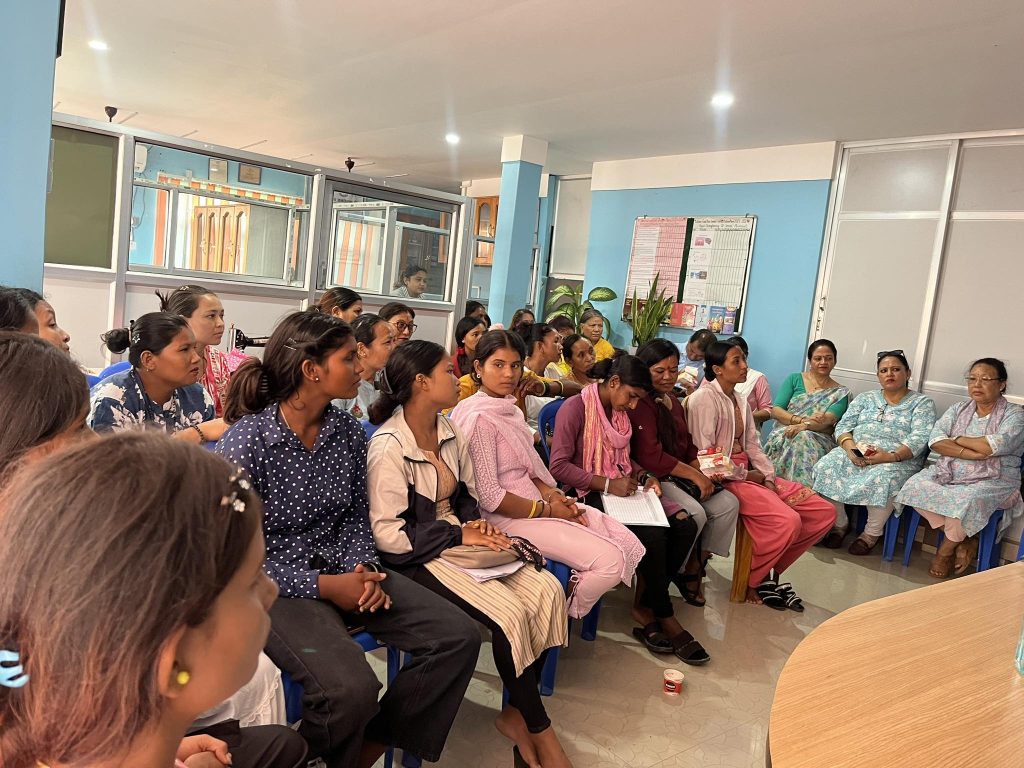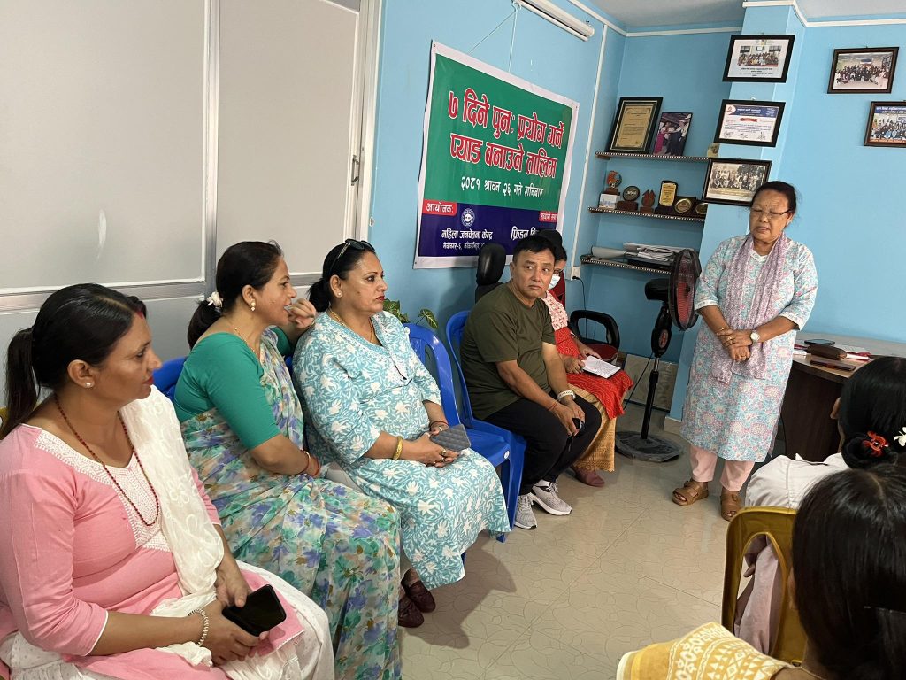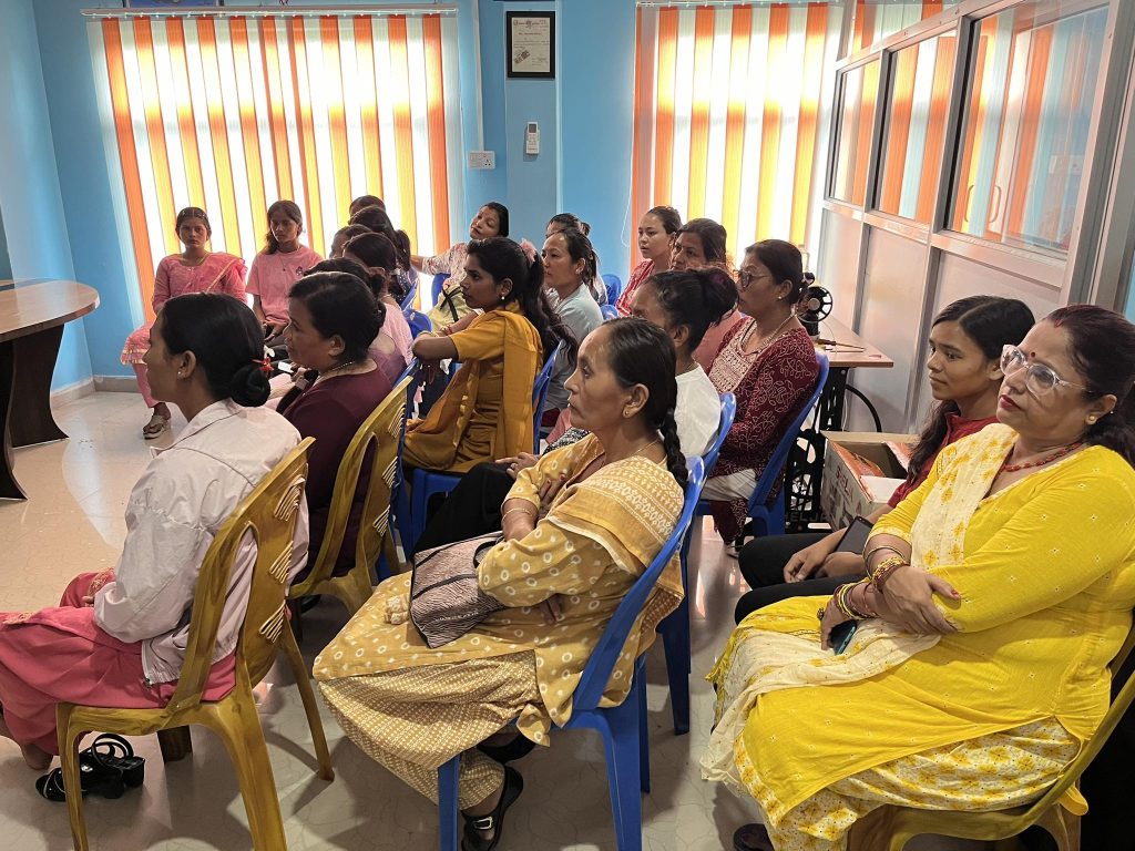 Mahila Janchetana Kendra recently held a 7-day training on making reusable pads, supported financially by Tewa and technically by Freedom Kit Bags. Eighteen participants attended the training: 7 from Kachankawal, Jhapa; 3 from Barhadashi, Jhapa; and 8 from Mechinagar. Over the course of the week, participants were enthusiastic about learning from facilitators Nirmala Shrestha and Samjhana Danuwar from Freedom Kit Bags.