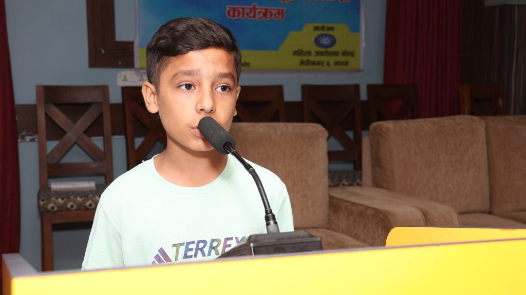 A total of 41 adolescent boys and girls from all 14 local governments of Jhapa, along with the heads of women and children branches and school focal teachers, actively participated in the program.