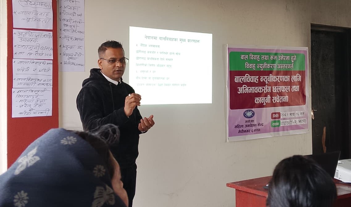 A one-day “Interaction with Parents and Legal Awareness” program, organized by Mahila Janachetana Kendra, was successfully conducted in Barhadashi Rural Municipality,  Kachankawal Rural Municipality and Mechinagar Municipality. The program was facilitated by Advocate Tika Prasad Kadel.